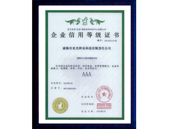 〖信用等級(jí)證書〗